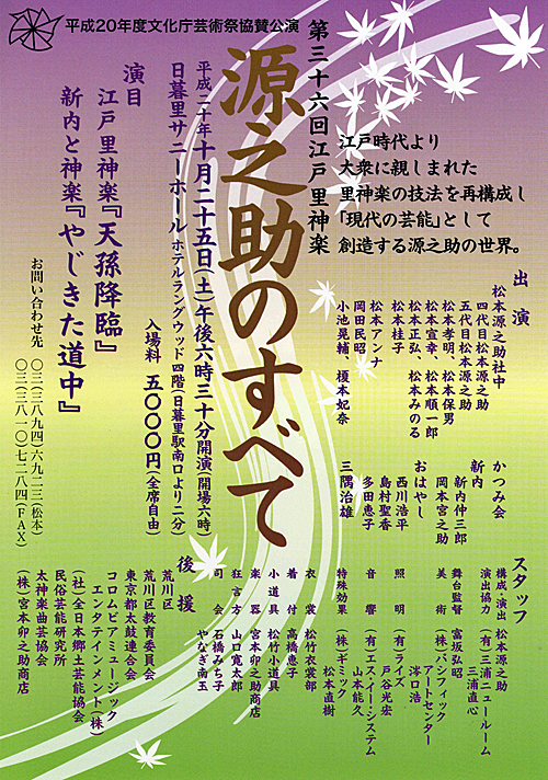 〜 幻 想 〜 獅子舞 祭囃子競演お話 三隅治雄先生 「源之助と神楽」江戸里神楽 「熊襲征伐」